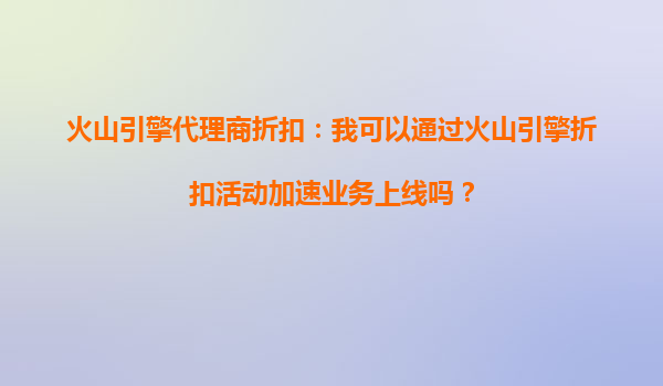2025-10-10火山引擎代理商折扣:我可以通过火山引擎折扣活动加速业务上线吗? 一、火山引擎代理商折扣的核心价值 火山引擎作为字节跳动旗下的云计算服务品牌,凭借其强大的技术底座和丰富的行业经...