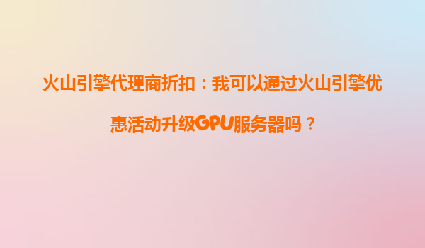 2025-10-10火山引擎代理商折扣:升级GPU服务器的最佳选择 在数字化转型的浪潮中,企业对高性能计算资源的需求日益增长,尤其是GPU服务器在AI训练、图形渲染等场景中的重要性愈发凸显。火山引擎作为字节跳动旗下的云计算品...