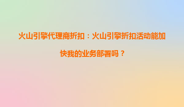 2025-10-10火山引擎代理商折扣:我能通过火山引擎优惠活动降低企业云服务费用吗? 一、火山引擎代理商折扣的价值 火山引擎作为字节跳动旗下的云计算服务平台,近年来凭借其技术优势和资源整合能力,逐渐成为...
