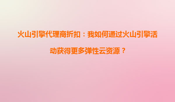 2025-10-10火山引擎代理商折扣:如何通过火山引擎活动获得更多弹性云资源? 一、火山引擎弹性云的核心优势 火山引擎作为字节跳动旗下的云计算服务平台,其弹性云资源以高性能、高可靠性和灵活扩展性著称。以...