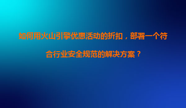 2025-11-05如何利用火山引擎优惠活动部署符合行业安全规范的解决方案 一、火山引擎优惠活动概览 火山引擎作为字节跳动旗下的云服务平台,定期推出包括新用户首单折扣、满减券包、长期套餐优惠等促销活动。例如: ...