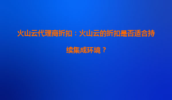 2025-10-05火山云代理商折扣:火山云的折扣是否适合持续集成环境? 引言 在当今快速发展的软件开发领域,持续集成(ContinuousIntegration,CI)已成为提升开发效率、确...