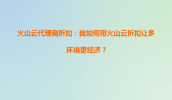 火山云代理商折扣:如何用火山云折扣让多环境更经济? 引言 在当今数字化时代,云计算已成为企业IT基础设施的核心组成部分。无论是初创公司还是大型企业,都在寻求高效、灵活且经济的云解决方案。火山云作...