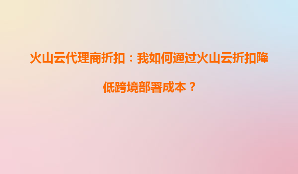 2025-10-05火山云代理商折扣:我如何通过火山云折扣降低跨境部署成本? 一、火山云的核心优势与跨境部署价值 火山云作为字节跳动旗下的云计算服务品牌,凭借全球化基础设施布局和弹性资源调度能力,为跨境业务提供以...