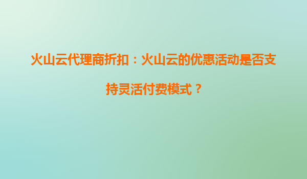 2025-10-05火山云代理商折扣:灵活付费模式助力企业降本增效 一、火山云优惠活动与灵活付费模式解析 火山云作为字节跳动旗下的云计算服务品牌,始终致力于为企业提供高性价比的云服务解决方案。针...