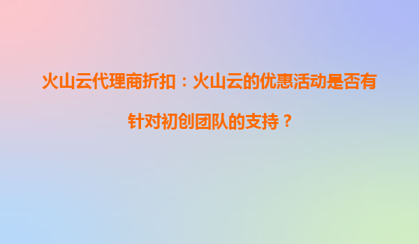 2025-10-04火山云代理商折扣:初创团队的云端加速器 一、火山云:为初创团队量身定制的云服务 在数字化浪潮中,初创团队往往面临资源有限、技术门槛高的挑战。火山云作为...