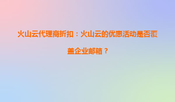 2025-10-05火山云代理商折扣:火山云的优惠活动是否覆盖企业邮箱? 一、火山云及其代理商的核心优势 火山云作为国内领先的云计算服务提供商,凭借其高性能的服务器资源、...