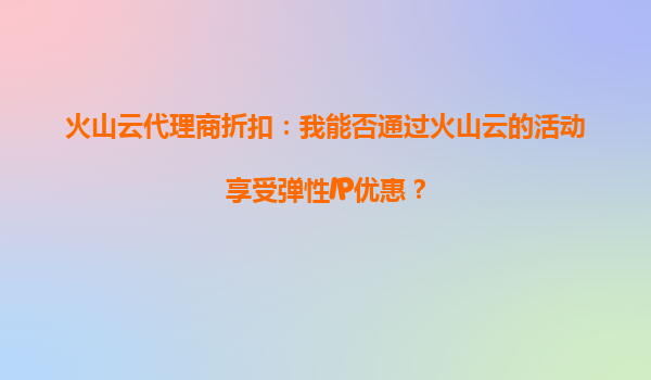2025-10-05火山云代理商折扣:弹性IP优惠活动深度解析 一、火山云代理商折扣政策概述 火山云作为领先的云计算服务提供商,为代理商和终端用户提供了多样化的折扣政策。针对弹性IP这一核心产品,火山云会定期推出专项优惠...
