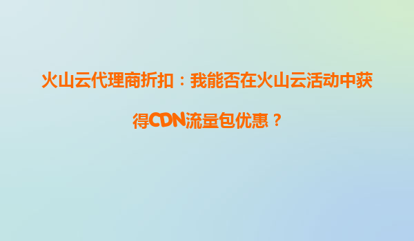 2025-10-04火山云代理商折扣:我能否在火山云活动中获得CDN流量包优惠? 火山云CDN流量包优惠活动解析 火山云作为字节跳动旗下的云计算服务品牌,凭借其强大的技术支持和丰富的资源储备,为用...