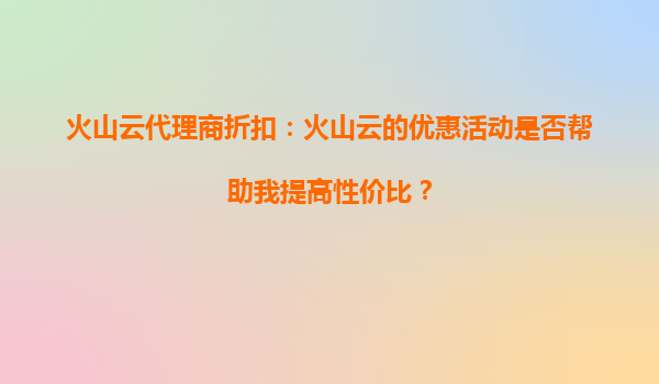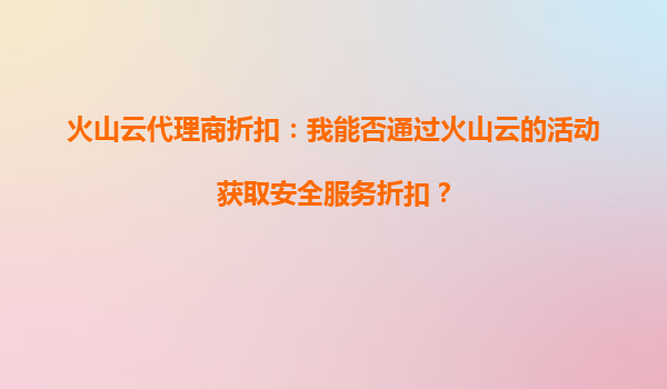 2025-10-04火山云代理商折扣:我能否通过火山云的活动享受API调用折扣? 火山云及其代理商的核心优势 火山云作为字节跳动旗下的云计算服务平台,凭借其强大的基础设施、稳定的性能以及丰富的产品矩阵,已成为企业数字化转型...