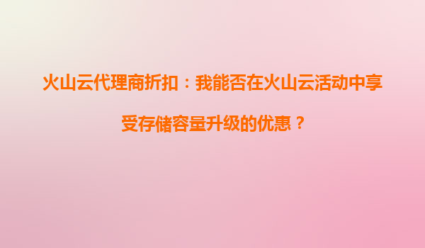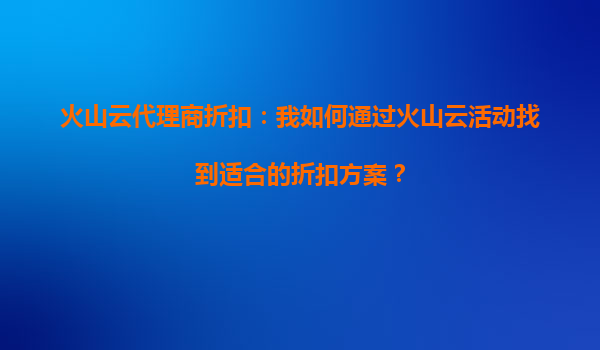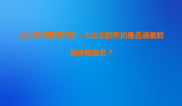 2025-10-03火山云代理商折扣:火山云的折扣是否涵盖数据传输服务? 火山云及其代理商的核心优势 火山云作为国内领先的云计算服务提供商,凭借其高性能计算资源、弹性扩展...