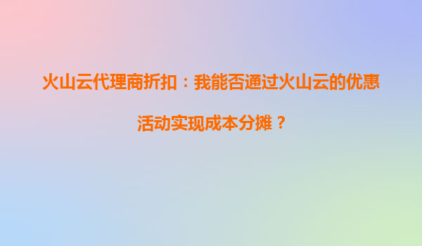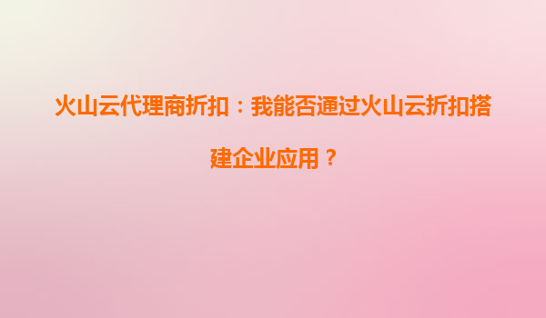 火山云代理商折扣:我能否通过火山云折扣搭建企业应用? 一、火山云代理商折扣的核心价值 火山云作为字节跳动旗下的云计算服务平台,凭借其强大的技术能力和丰富的资源生态,为企业用户...