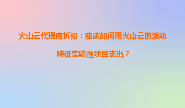 2025-10-03如何利用火山云代理商折扣降低实验性项目支出? 一、火山云的核心优势与实验性项目需求 火山云作为字节跳动旗下的云计算服务平台,提供弹性计算、存储、数据库等全栈云服务,其核心优势在于: ...