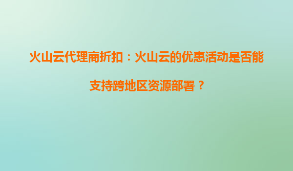 2025-10-03火山云代理商折扣:火山云的优惠活动是否能支持跨地区资源部署? 一、火山云的核心优势与跨地区部署能力 火山云作为字节跳动旗下的云计算服务品牌,凭借其全球化基础设施布局和弹性资源...
