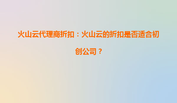 2025-10-03火山云代理商折扣:火山云的折扣是否适合初创公司? 引言 在当今数字化时代,Explosion云服务已成为企业运营的核心基础设施之一,尤其是对于初创公司而言,选择合适的云服务提供商至关重要。火山云作为国内领先的云...