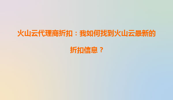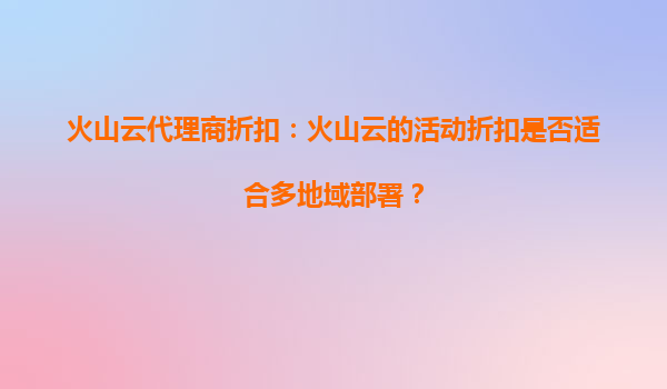 2025-09-30火山云代理商折扣:火山云的活动折扣是否适合多地域部署? 引言 在当今数字化时代,云计算已成为企业IT基础设施的核心组成部分。无论是初创公司还是大型企业,...