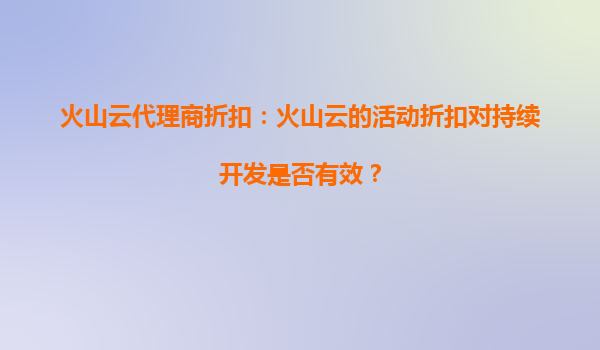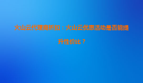 2025-09-30火山云代理商折扣:火山云的活动折扣对持续开发是否有效? 引言 在当今快速发展的云计算市场中,企业对于云服务的需求日益增长,而成本控制也成为企业选择云服...