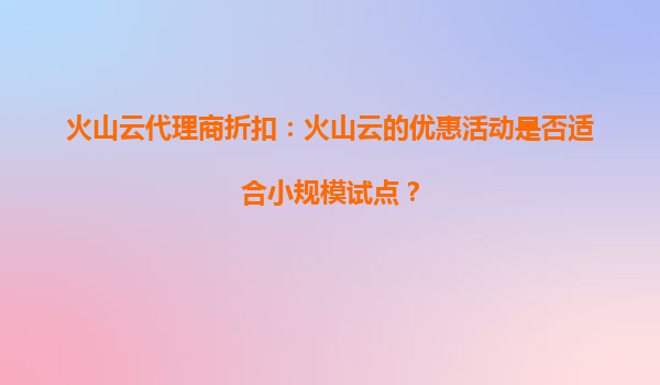 2025-09-30火山云代理商折扣:小规模试点的理想选择 随着企业数字化转型加速,云计算服务成为降本增效的核心工具。火山云凭借其灵活的产品架构和代理商优惠政策,尤其适合中小型企业或初创团队开展小规模试点项目。本文将详...