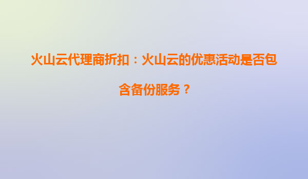 2025-09-30火山云代理商折扣:备份服务是否包含在优惠活动中? 随着企业数字化转型的加速,云计算服务成为众多企业的首选。火山云作为国内领先的云服务提供商,凭借其高性能、高可靠性和灵活的计费模式,赢得了广泛的市场认...