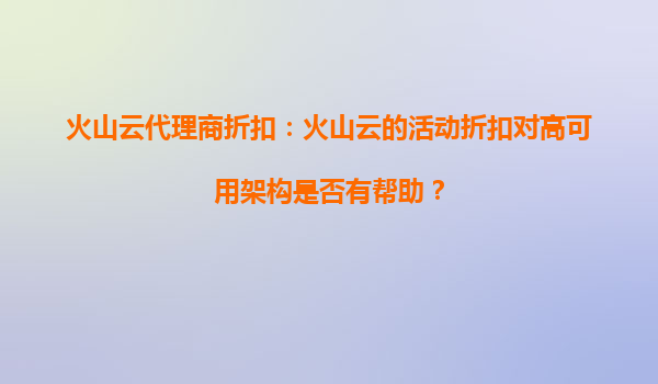 2025-09-30火山云代理商折扣:火山云的活动折扣对高可用架构是否有帮助? 一、火山云的核心优势与高可用架构 火山云作为字节跳动旗下的云计算服务品牌,凭借其全球化基础设施、高性能计算能力和弹性资源调度,成为企...