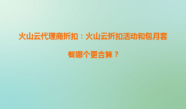 2025-09-29火山云代理商折扣:活动调整频率与核心优势解析 一、火山云代理商折扣是否频繁调整? 火山云作为字节跳动旗下的云计算服务品牌,其代理商折扣政策会根据市场策略、季节性活动和产品推广阶段进行动态优化。...