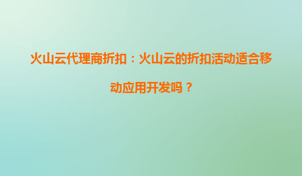 2025-09-29火山云代理商折扣:火山云的折扣活动适合移动应用开发吗? 在当今数字化时代,移动应用开发的需求持续增长,而选择合适的云计算服务平台对开发者来说至关重要。火山云作为国内领先的云计算服务提供商,以其稳定、...