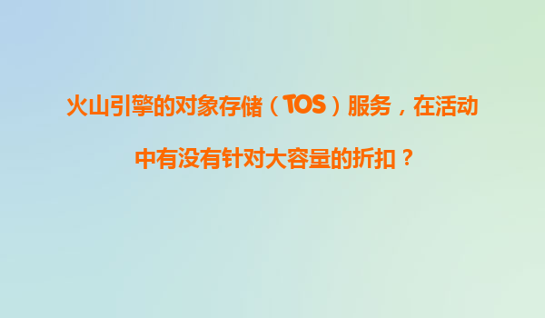 2025-11-04火山引擎TOS大容量存储折扣解析:如何通过代理商实现最优成本? 一、火山引擎TOS的核心优势 火山引擎对象存储(TOS)作为字节跳动旗下的云存储服务,提供99.9999999999%(12个9)的数据持久性,支持EB级容量扩展。...