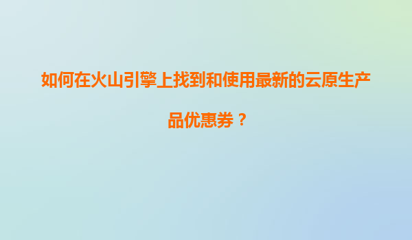 2025-11-04如何在火山引擎上找到并使用最新的云原生产品优惠券? 一、火山引擎云原生产品概述 火山引擎是字节跳动旗下的云计算服务平台,提供包括容器服务、Serverless、微服务治理等在...