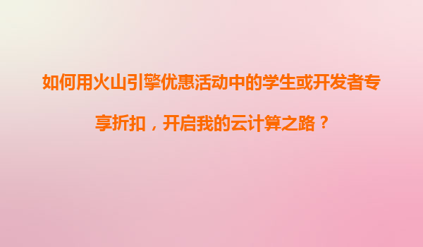 2025-11-04如何用火山引擎优惠活动中的学生或开发者专享折扣,开启我的云计算之路? 一、火山引擎的学生与开发者专享优惠 在数字化转型的大潮中,云计算已成为个人学习与企业发展的核心工具。但对于预算...