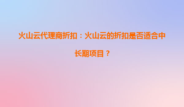 2025-09-29火山云代理商折扣:火山云的折扣是否适合中长期项目? 引言 在云计算市场竞争日益激烈的今天,企业选择云服务时不仅关注技术能力,更注重成本效益。火山云作为...