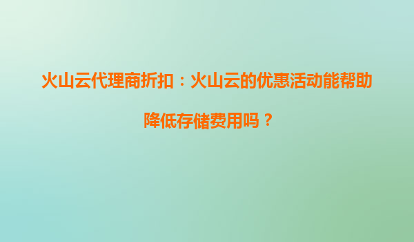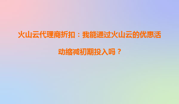 2025-09-29火山云代理商折扣:火山云的折扣活动对测试环境是否合适? 引言 在云计算市场竞争日益激烈的今天,各大云服务提供商纷纷推出各种折扣活动以吸引用户。火山云作...