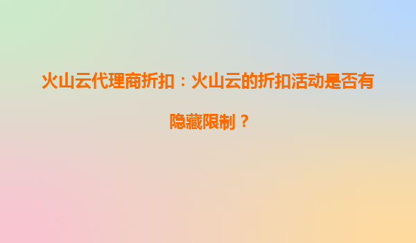 2025-09-29火山云代理商折扣:火山云的折扣活动是否有隐藏限制? 一、火山云的代理商折扣政策概述 火山云作为国内领先的云计算服务提供商,为吸引更多合作伙伴,推出了针对代理商的折扣活动。通常...
