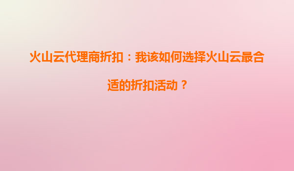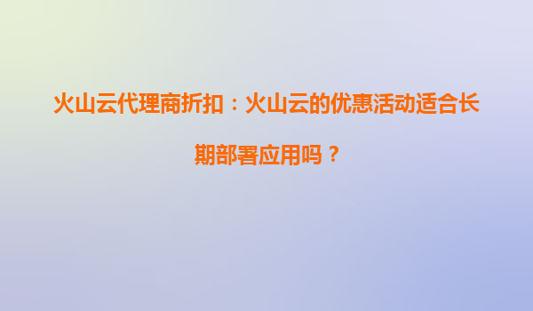 2025-09-28火山云代理商折扣:火山云的优惠活动适合长期部署应用吗? 一、火山云的优惠活动概述 火山云作为国内领先的云计算服务商,为吸引更多企业和开发者使用其平台,常年推出多种优惠活动。代理...