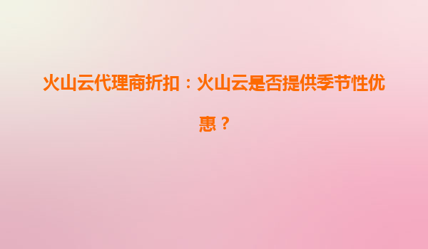 2025-09-28火山云代理商折扣:火山云是否提供季节性优惠? 一、火山云的核心优势 作为字节跳动旗下的云计算服务平台,火山云凭借强大的基础设施和技术能力,为企业提供了...