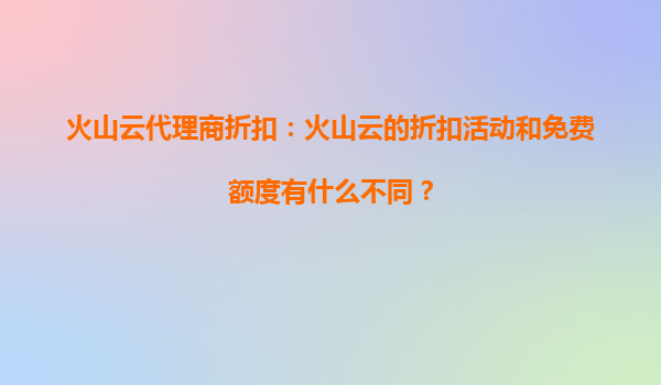 2025-09-28火山云代理商折扣与免费额度解析:优势全览 一、火山云折扣活动与免费额度的区别 火山云作为字节跳动旗下的云计算服务,为吸引用户提供了多种优惠政策,主要包...