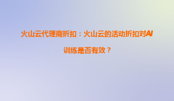 2025-09-28火山云代理商折扣:AI训练的理想助力 火山云代理商折扣的核心价值 火山云通过代理商体系提供的专项折扣活动,正是AI训练场景降本增效的关键支撑。区别于常规云服务的标准化定价,代理商专属折扣可针对GPU/TPU资...