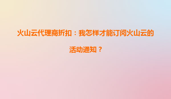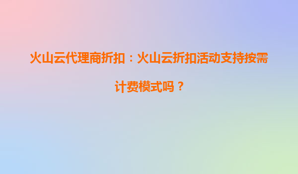 2025-09-27火山云代理商折扣:活动使用期限解析及平台优势 一、火山云代理商折扣活动简介 火山云作为领先的云计算服务提供商,面向代理商及企业用户推出多项优惠活动,旨...