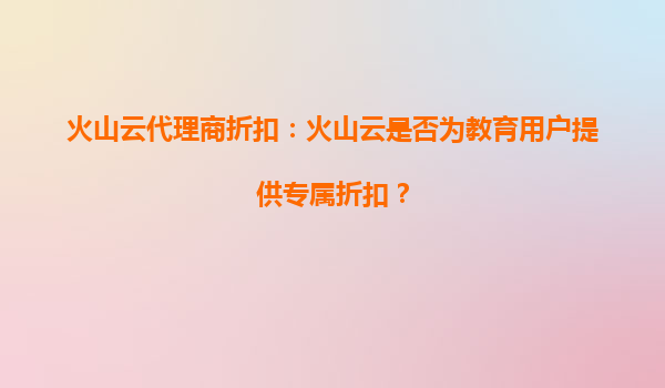2025-09-27火山云:为教育行业量身定制专属折扣与解决方案 火山云教育专属折扣政策 火山云积极响应国家“教育数字化”战略,特别针对教育行业用户推出专属折扣政策。高校、中小学、在线教育...