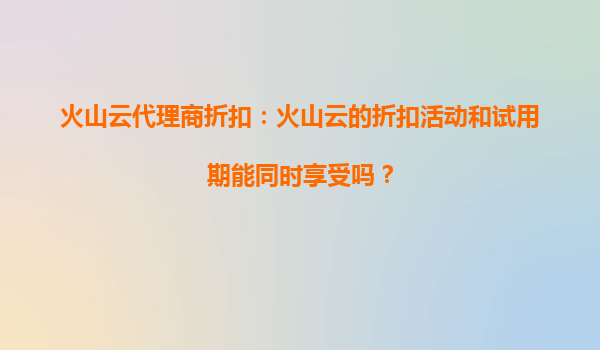 火山云代理商折扣:火山云的折扣活动和试用期能同时享受吗? 火山云的优势 火山云作为国内领先的云计算服务提供商,凭借其强大的技术实力和丰富的行业经验,为...