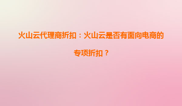 2025-09-27火山云代理商折扣:火山云是否有面向电商的专项折扣? 一、火山云简介 火山云是字节跳动旗下的云计算服务品牌,依托字节跳动在互联网领域的深厚技术积累和全球化资源,为企业客户提供全...