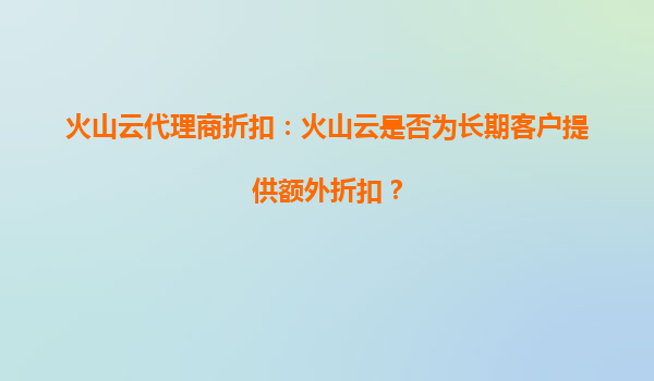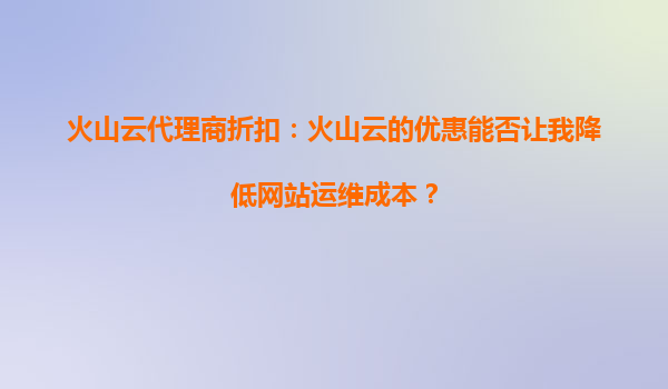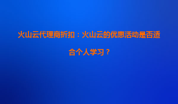 2025-09-21火山云代理商折扣:火山云的优惠活动是否适合个人学习? 引言 近年来,云计算服务逐渐成为企业和个人学习的重要工具之一。火山云作为国内领先的云服务提供商之...
