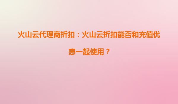 2025-09-21火山云代理商折扣:灵活组合的优惠体系 火山云作为国内领先的云计算服务提供商,始终致力于为客户提供高性价比的云服务解决方案。针对用户关心的"火山云代理商折扣能否和充值优惠一起使用"这一问题,答案是肯定的...