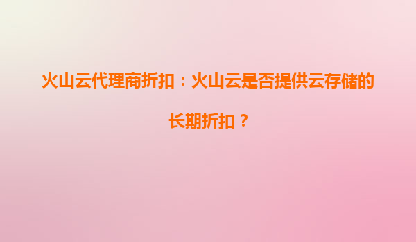2025-09-20火山云代理商折扣:火山云是否提供云存储的长期折扣? 在当今数字化时代,云存储已成为企业和个人不可或缺的基础设施。无论是数据备份、文件共享还是应用部署,云存储都发挥着重要作用。作为国内领先的云服...
