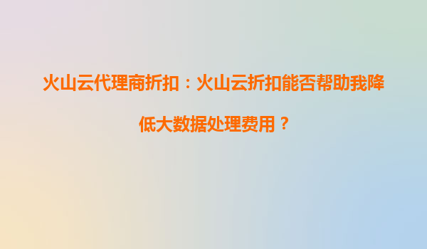 2025-09-19火山云代理商折扣:火山云折扣能否帮助我降低大数据处理费用? 一、火山云的核心优势与大数据处理能力 火山云作为字节跳动旗下的云计算服务品牌,凭借其稳定的基础设施和弹性计算资源,为大数据处理提供了...