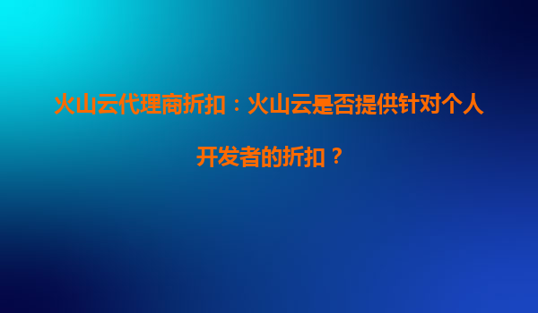 2025-09-19火山云代理商折扣:火山云是否提供针对个人开发者的折扣? 一、火山云简介 火山云是字节跳动旗下的云计算服务品牌,依托字节跳动强大的技术积累和全球基础设施,为用户提供高性能、稳定可...