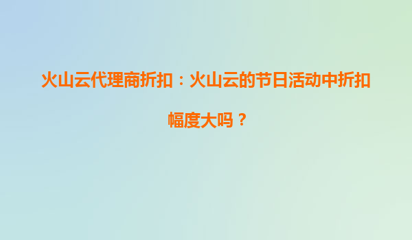 2025-09-19火山云代理商折扣解析:节日活动中的优惠力度与综合优势 一、火山云节日折扣活动力度分析 在数字化转型浪潮下,云计算服务已成为企业提质增效的核心工具。作为国内领先的云服务品牌,火山云...