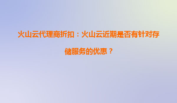2025-09-19火山云代理商折扣:火山云存储服务的优惠与优势解析 一、火山云存储服务近期优惠动态 近期,火山云为回馈用户持续支持,针对对象存储、文件存储、块存储等核心...