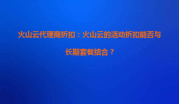 2025-09-19火山云代理商折扣:购买套餐时能否享受多重折扣? 在云计算服务日益普及的今天,选择一家稳定、高效且价格优惠的云服务提供商变得尤为重要。火山云作为国内领先的云计算平台之一,凭借其高性能的产品和完善的服务...