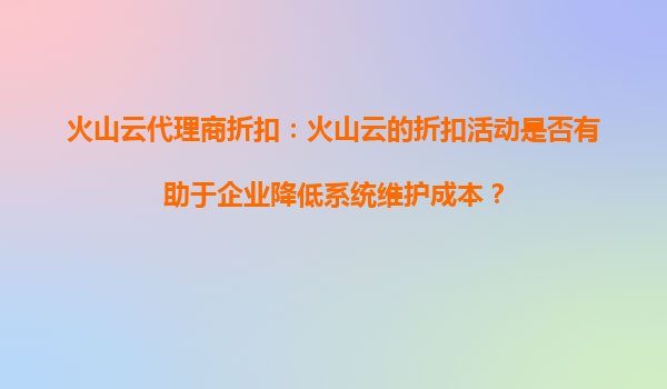 2025-09-18火山云代理商折扣:火山云的折扣活动是否有助于企业降低系统维护成本? 一、火山云的产品优势与性能特点 火山云作为字节跳动旗下的云计算品牌,依托强大的技术团队和基础设施资源,为企...