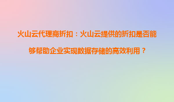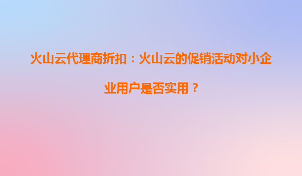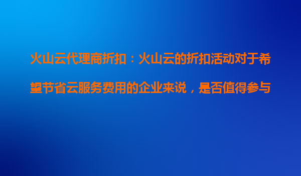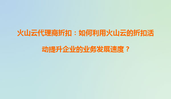 火山云代理商折扣:小企业如何借力腾飞? 云计算已成为企业数字化转型的核心基础设施,而对于预算有限的小企业来说,如何以更低成本享受高品质云服务尤为关键。火山云近期推出的代理商折扣政策,恰好为小企...